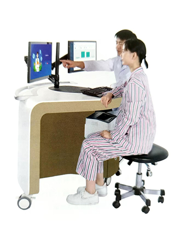 1, 触屏双屏版 一个使用者和一个操作者各自面对一块屏幕; 使用者触屏测试,操作者引导问答,互不干扰。